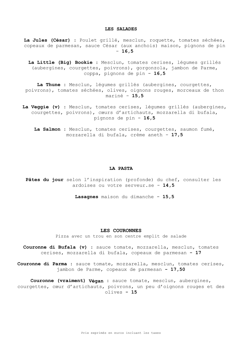 Welcome to Le Bookie, a charming culinary gem nestled in the heart of Paris at 15 Rue de Trevise. This beloved eatery specializes in generously topped pizzas and fresh salads that leave diners pleasantly surprised and fully satisfied. Patrons rave about the abundant ingredients, with big chunks of quality cheese elevating every bite.